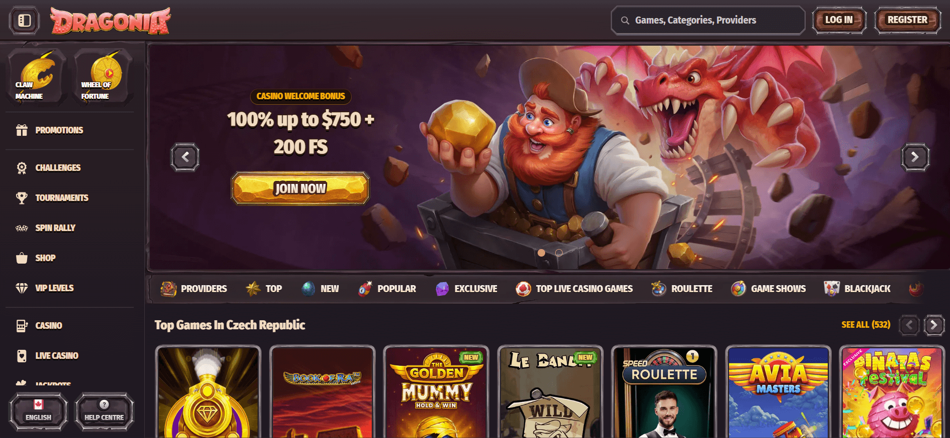 • Nabízí více než 60 herních poskytovatelů